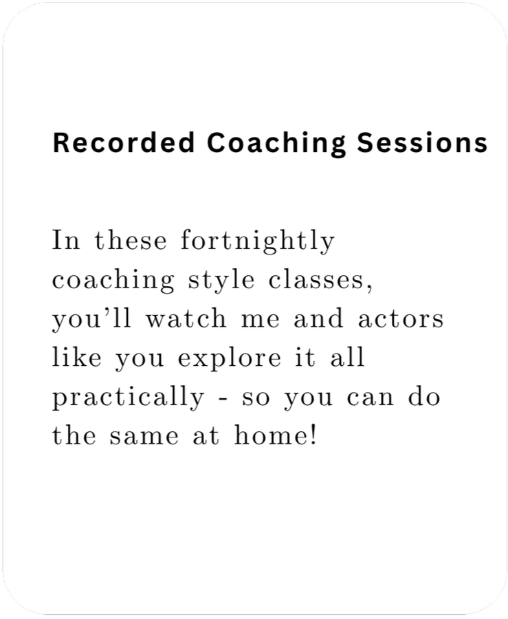 A three month, recorded,* online group coaching programme laying the foundations needed to approach acting in an accent with freedom and ease, for actors who are ready to change their relationship with accents, free up their performances and up level their career, in a safe, supportive environment, without time pressure or casting stress.